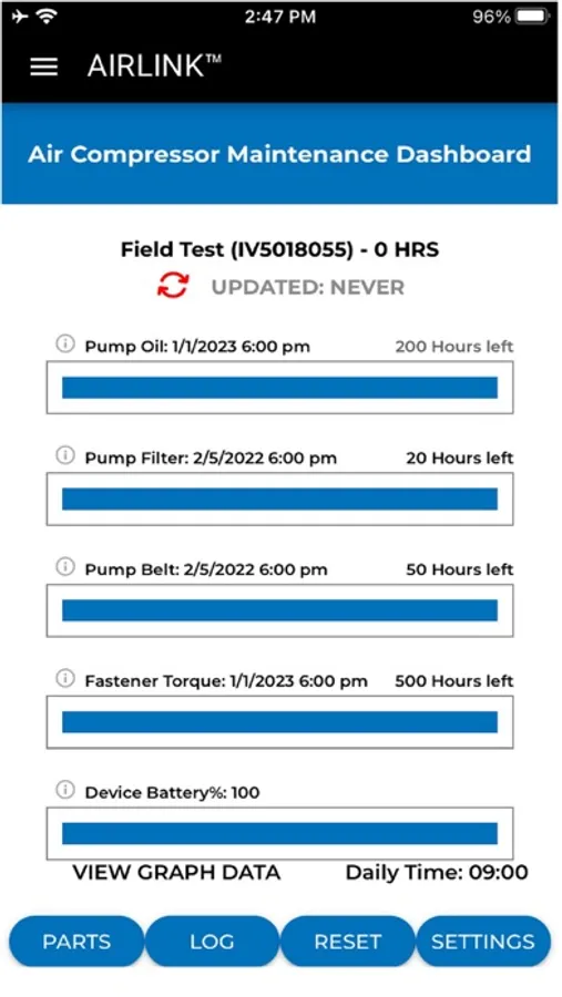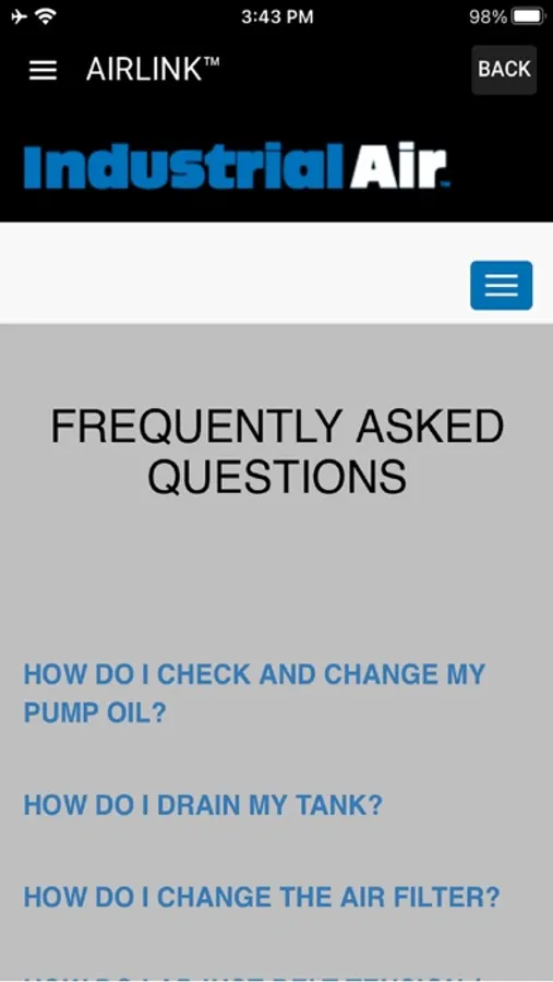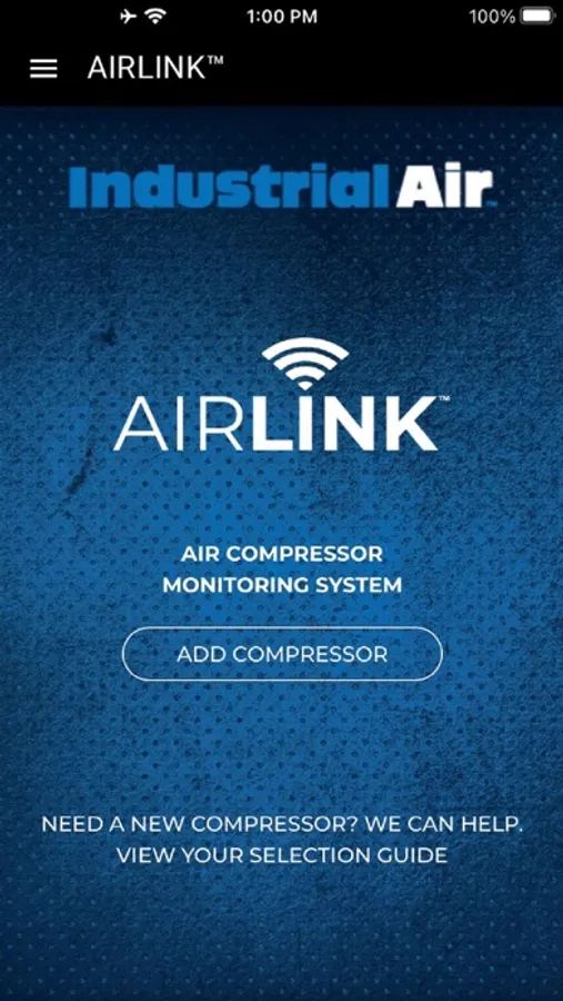 The Industrial Air AirLink system tracks your air compressor's runtime, energy usage and maintenance activities. Through the app you will be able to find service centers, repair parts and view FAQ's about your air compressor. The app will remind you of key maintenance activities as they come due so you can keep your air compressor running at peak efficiency and extend it's life.