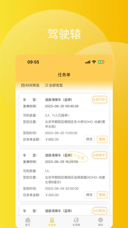 本软件为工程机械、道路货运提供高效的驾驶服务。 为工程机械、货运车辆找司机完成任务提供全面的信息及交易服务。 依托大数据和人工智能技术,实现工程机械、货运车辆的即时智能调度,为企业或个人提供高效的工程服务、运输方案。 解决车主找司机难,养司机难。