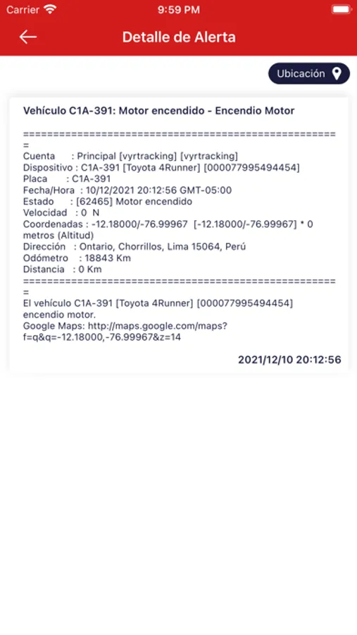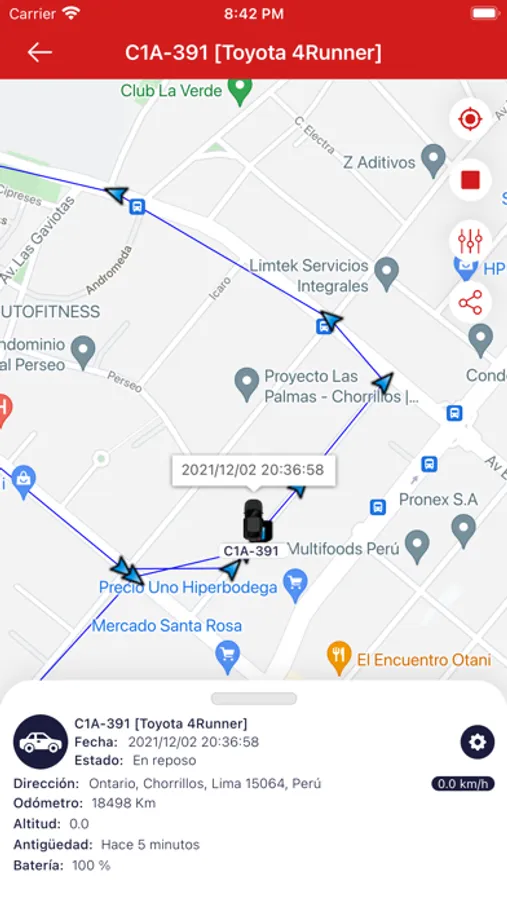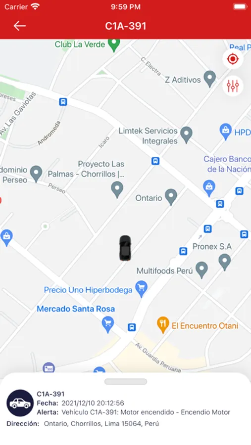 * localización en tiempo real de las unidades sobre el mapa