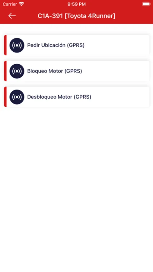 * envío de comandos de bloqueo/desbloqueo de motor desde el app