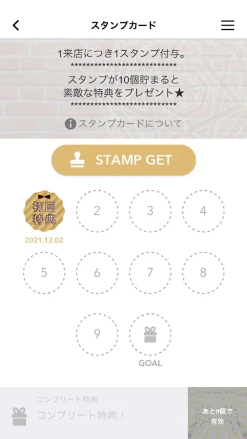 たくさん貯めていただくと次回使える特典をご用意しております。