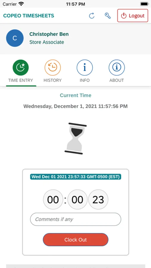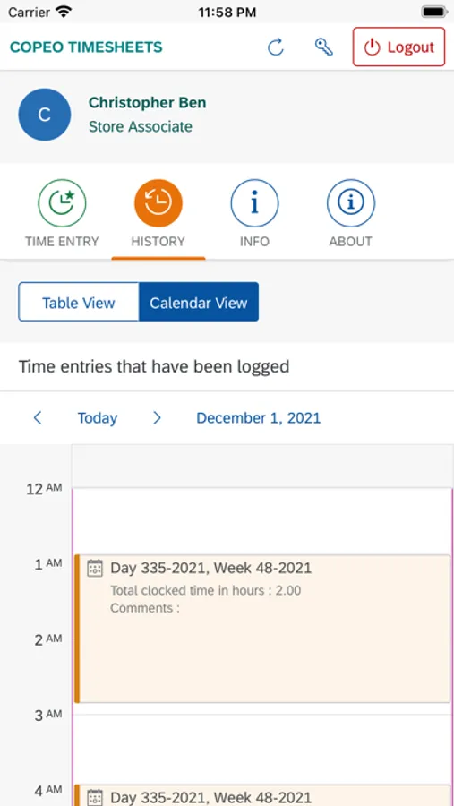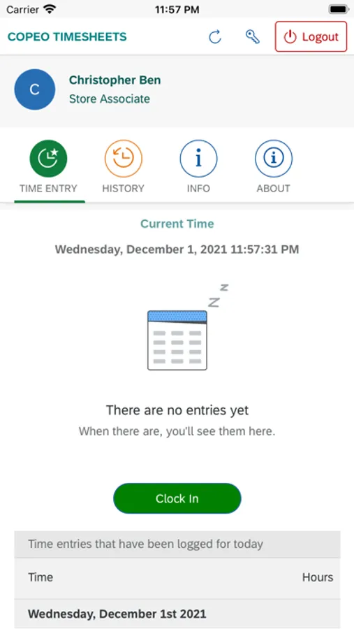 Simply choose Clock In and Clock Out times for the days worked to automatically calculate the total hours worked for each day.