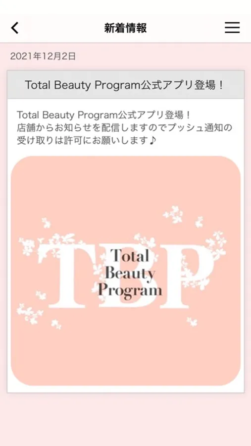 ・【Total Beauty Program】からの最新情報をプッシュ通知で受け取れます。