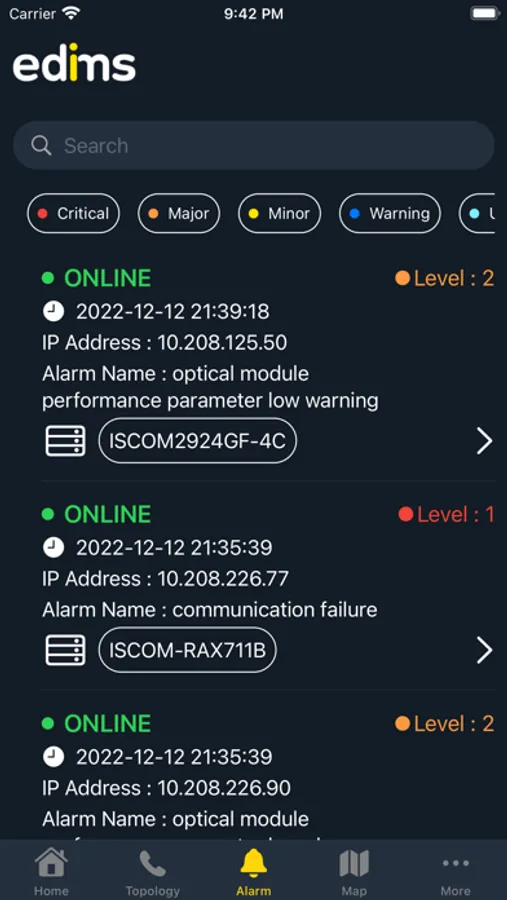 EDIMS is an application for network device monitoring system. The application will show informations that correct from the devices such as network topology, alarms, bandwidth and etc.