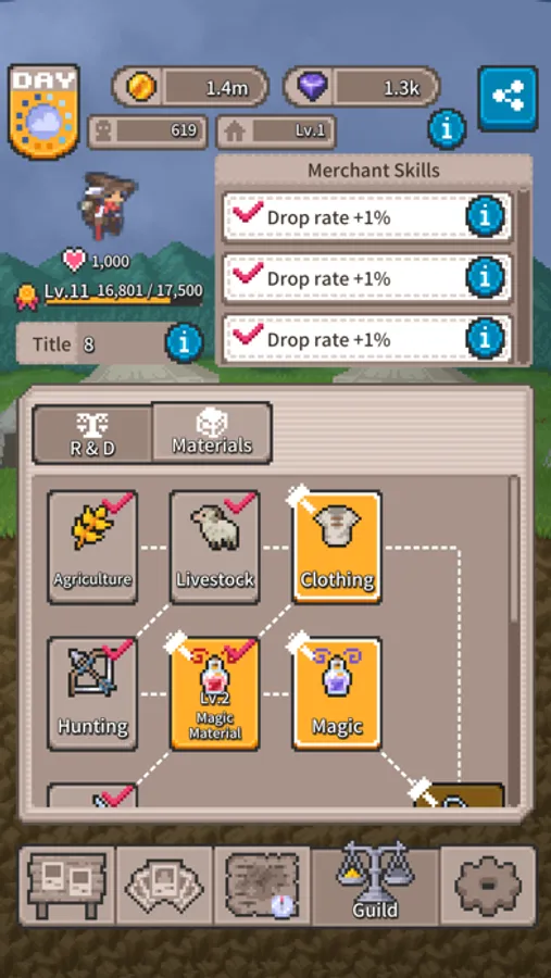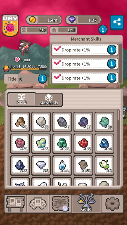 During battle, the player themselves has no means of attack. Your companions will automatically fight for you. There are various types of guards, so you can organize your party according to the route you choose to explore. You can even enhance the rarity of your guards by leveling them up or synthesizing them.