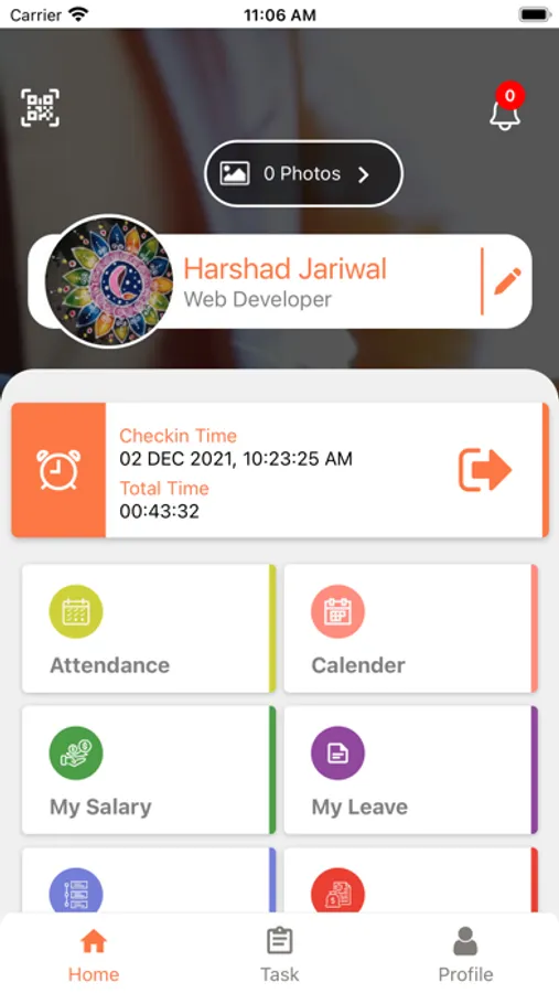 Member can see their calendar and view profile. Member can make attendance using QR code, submit a leave request and attendance.