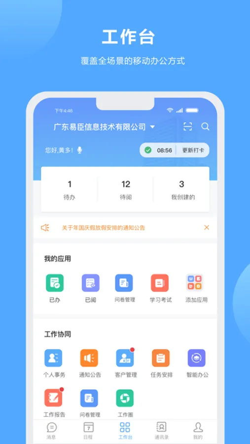 产品中心聚焦政务办公、智慧协同、信创OA、门户集成、移动办公、智能流程等,让工作更便捷、更高效、更智慧,助力客户打造企业办公新生态。