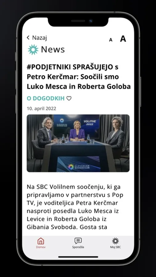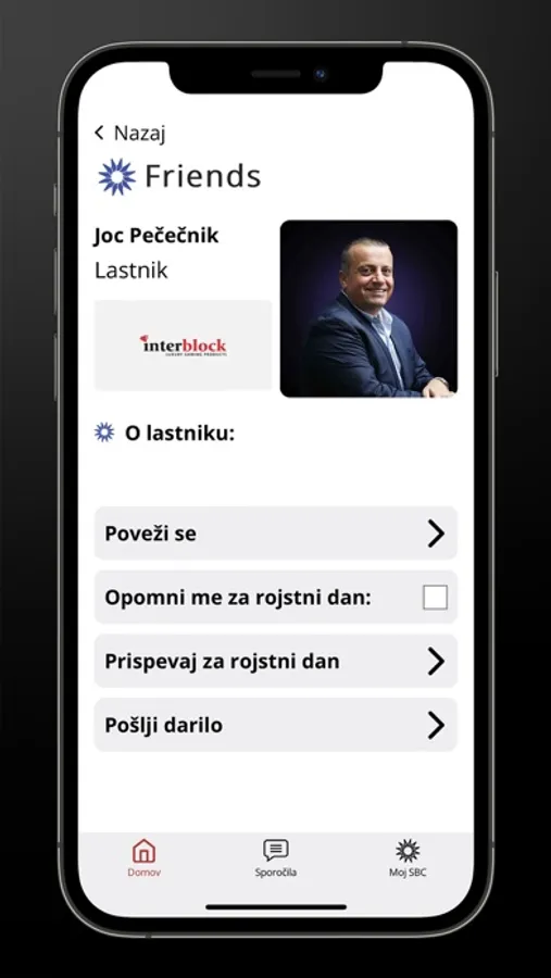 SBC mobilna aplikacija je napredno digitalno orodje, popolnoma prilagojeno podjetnikom in poslovnim odločevalcem, ki potrebujejo hiter, neposreden dostop do pomembnih poslovnih informacij in poslovne mreže.
