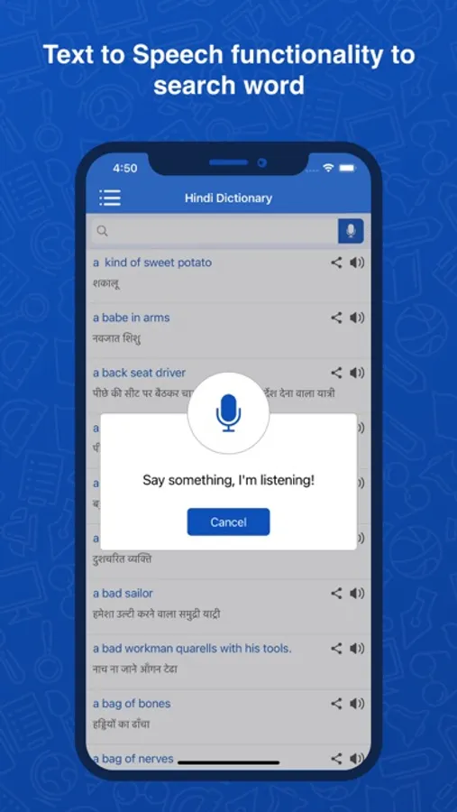 2- In Hindi Dictionary: Translator app, Users can search the word by their voice and read word meaning in both Hindi and English.