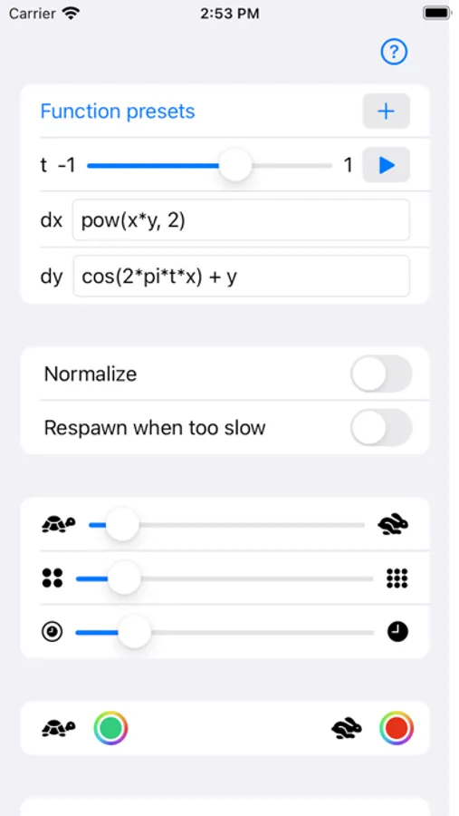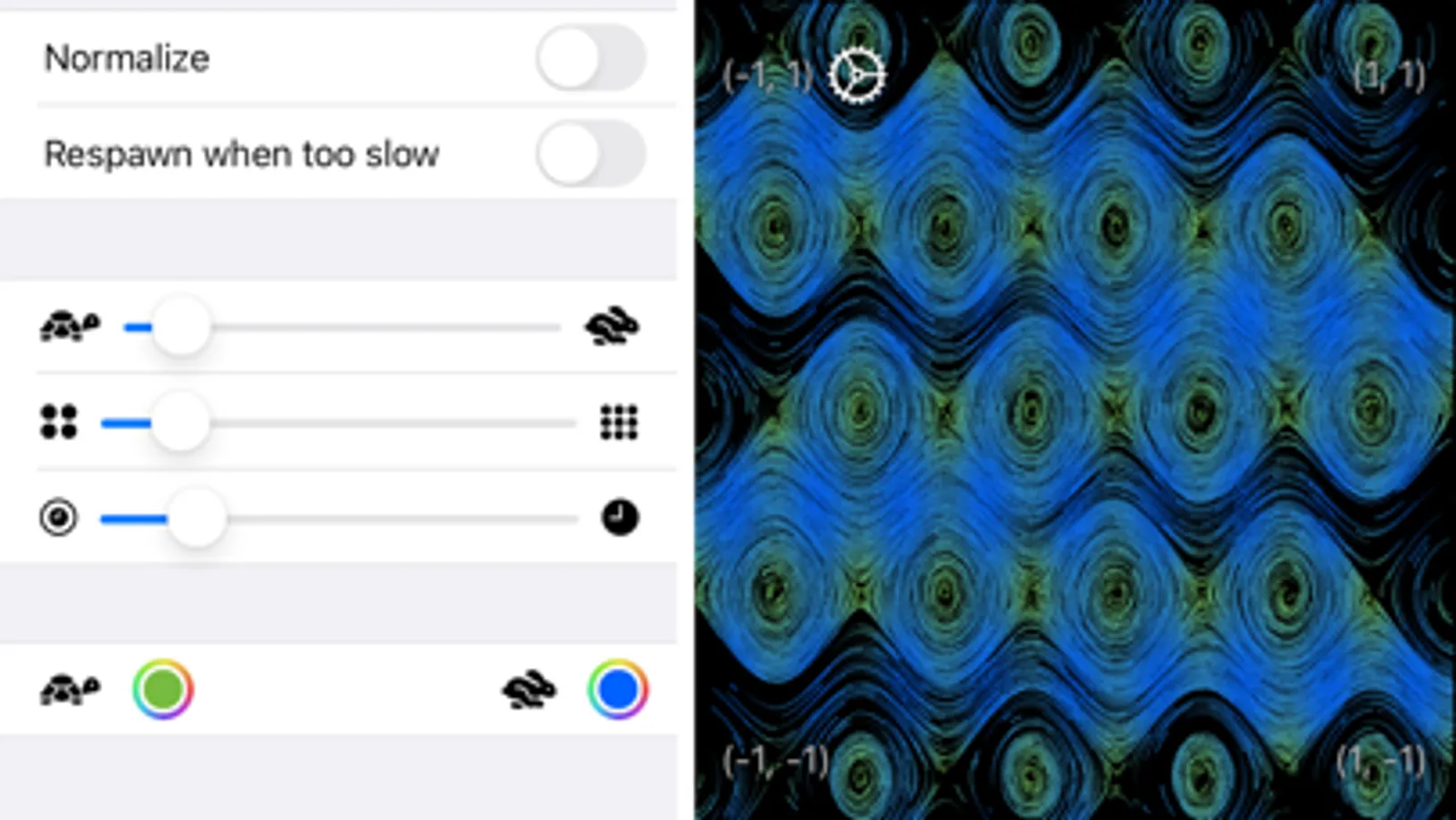 Tweak the different parameters of the simulation like speed, color, vector normalization, and more.