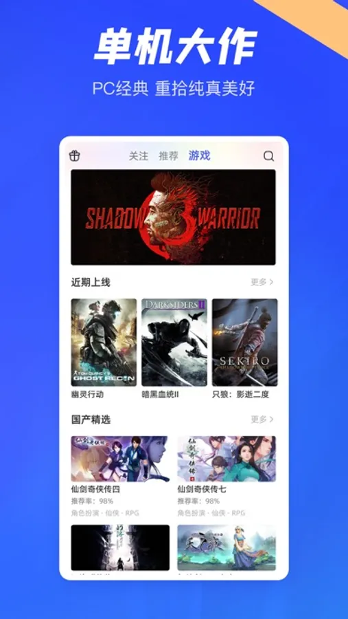 方块游戏是一个游戏推荐、发行平台,亦是一个高品质玩家交流社区。优质:《仙剑奇侠传》系列、《轩辕剑》系类、《只狼》、《河洛群侠传》等百余款游戏。免费:每周方块游戏都会向玩家限时免费赠送几款游戏。交流:评价、讨论游戏,通过与其他玩家的交流发现更多好游戏。
