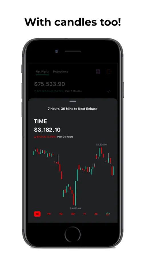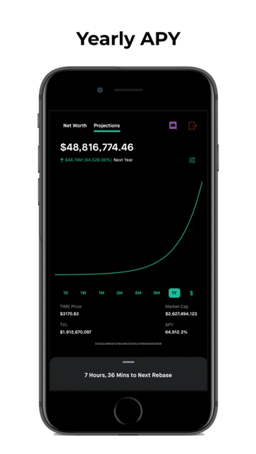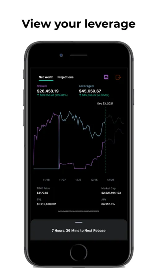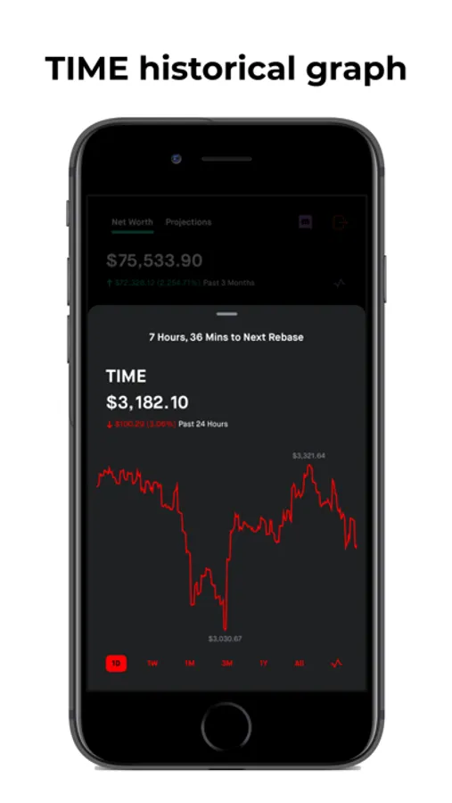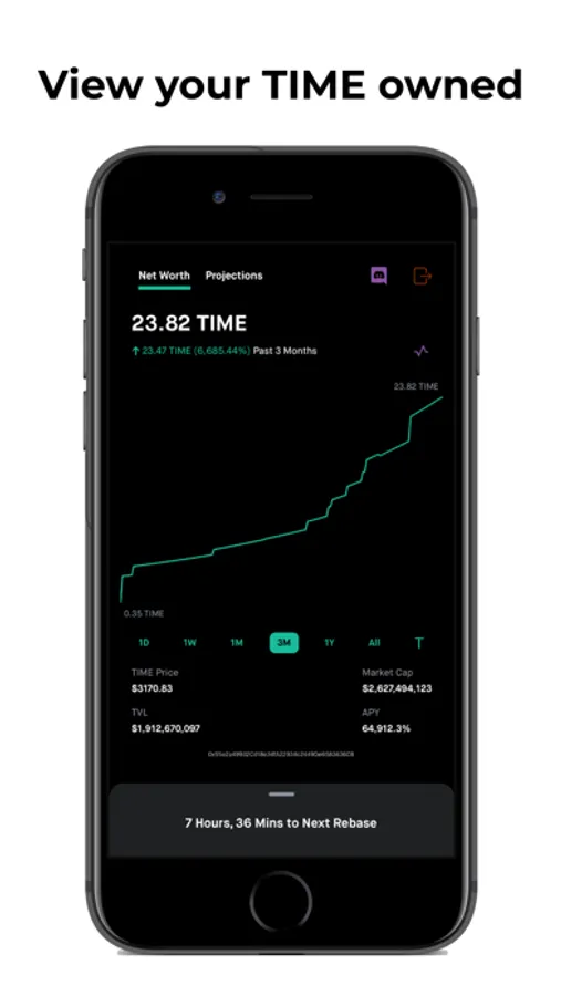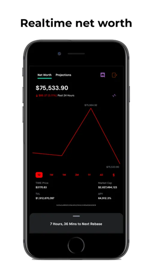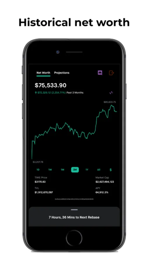 Experience an elegant way to view the amount of money you've invested in Wonderland. Easily see your net worth, projected net worth, and current price of TIME, historically and presently.