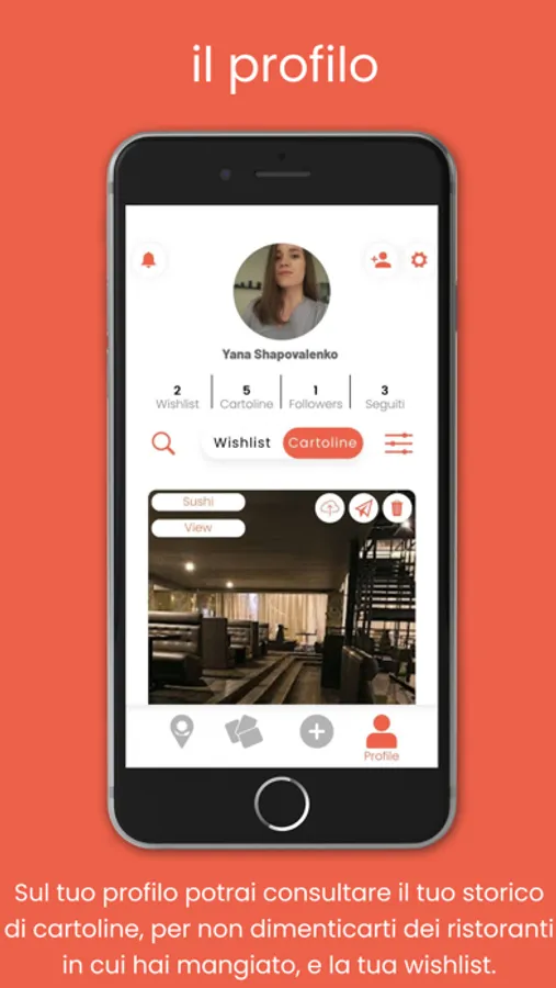 Sul tuo “profilo” potrai vedere tutte le cartoline che hai creato e la tua wishlist.
