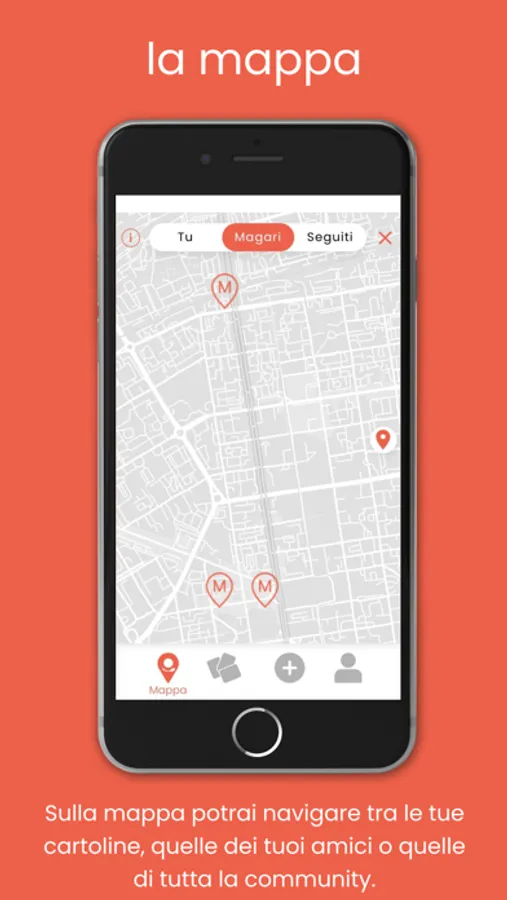 Sulla “mappa” potrai navigare tra le tue cartoline, quelle dei tuoi amici o quelle di tutta la community.