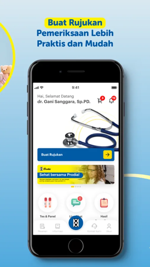Prodia for doctor allows you to create referral for patient to Prodia’s Lab around 254 outlets in 127 cities 34 provinces thoughout Indonesia, get some benefit by joining Live Chat in this applications and you will be connected to millions Prodia’s customer, can manage their Prodia patient’s health report and see the trend from each test, track your referral code in the apps from Order feature, can refer approximately 700 type of medical examination tests independently to patients.