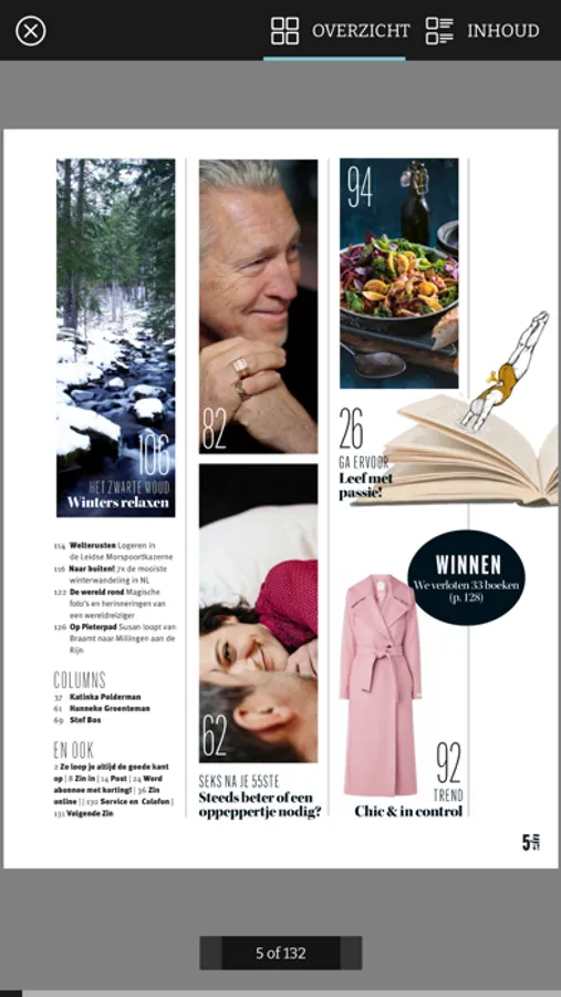 In Zin gaat het ergens over. Diepgravende, positieve en verrassende interviews, waardevolle tips voor boeken, films, theatervoorstellingen, je geld, je huis. Maar ook: hoe blijf je (of word je weer) gezond en fit. Lekker lezen op je telefoon, iPad of laptop