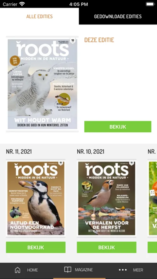 Met deze app heb je overal toegang tot Roots, al 10 jaar hét natuurmagazine van de Lage Landen. Lees als eerste het nieuwe nummer van Roots én Roots Vogelmagazine of duik in ons archief. Deze app bied je bovendien natuurnieuws, blogs van onze redacteuren en toegang tot onze podcast.
