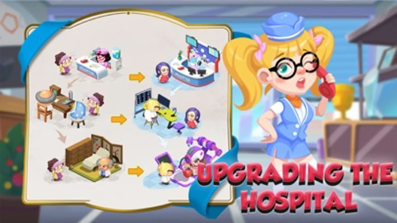 Build your own special hospital! Big map scene beyond imagination, expand as much as you like, design each hospital department, choose your favorite decoration. You love the hospitals decorated in a dark style? Or the cute style full of girlish heart? You want design a hospital back garden? Or a fancy employee lounge? It's all in your hands! Only you can not imagine, there is no impossibility in this world!