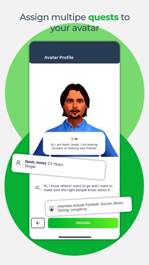 - add quests (your interests/activities/hobbies) which are the purpose of your avatar