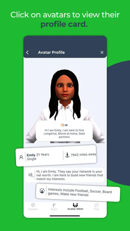 to do is enter your interests and send your avatar on a quest to make new friends.