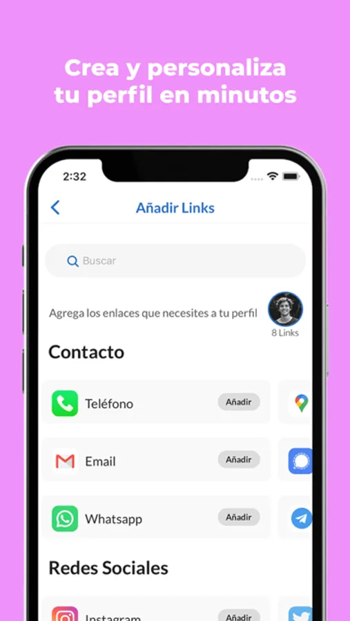 Conecta con quién quieras, cuando quieras y permite a tus contactos acceder a todo tu contenido.