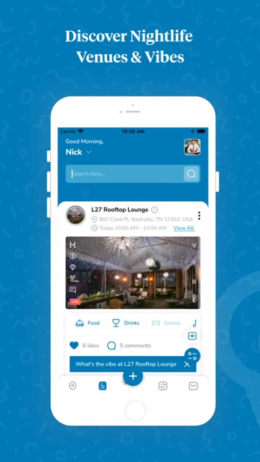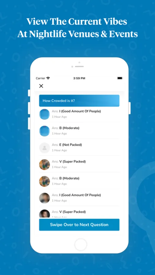Real-Time Data: Receive real-time data about the current “vibe” at nightlife venues and events nearby.