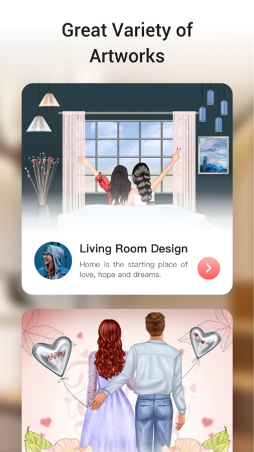 * Choose ideas, stickers, colors, patterns, and then create unique and beautiful paintings.