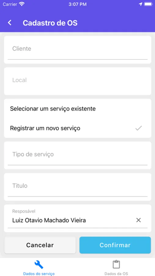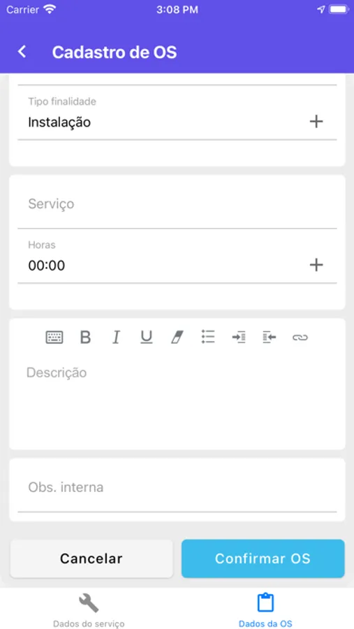Através do app, os técnicos de campo podem consultar, lançar atividades e materiais das suas ordens de serviço, bem como iniciar, pausar e concluir a execução de uma OS.