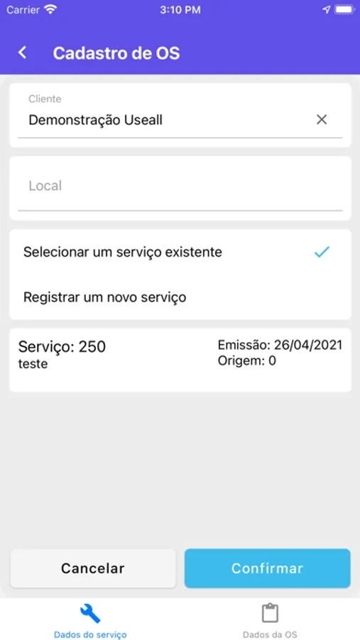 Aplicativo complementar ao sistema Useall Serviços destinado a aprimorar o controle e execução de ordens de serviço.