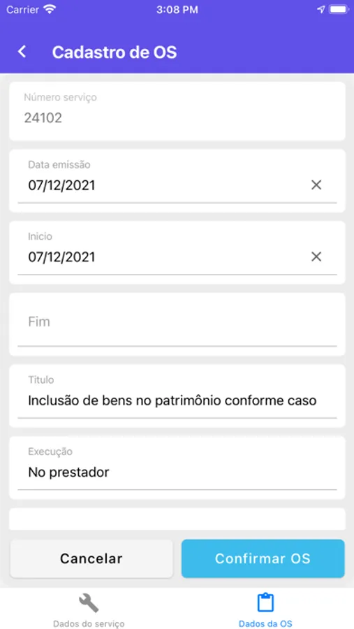 Gestão de ordens de serviço.