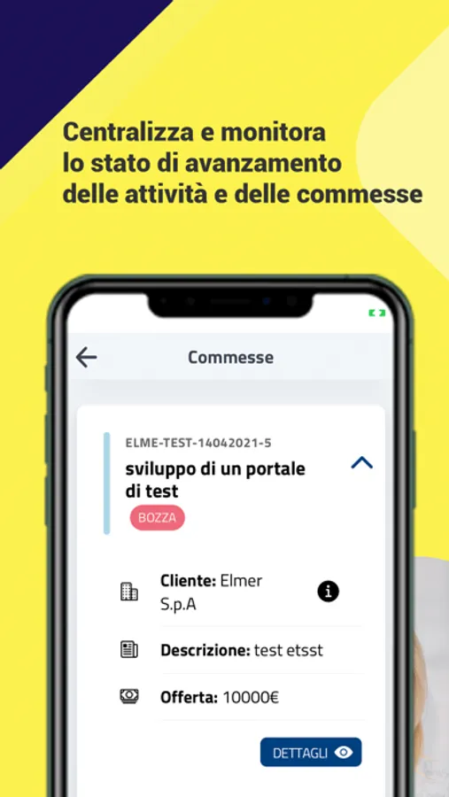 Centralizza e monitora lo stato di avanzamento delle commesse e della gestione degli asset di magazzino.