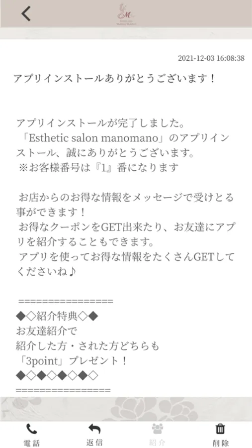 manomanoのアプリをSNSを通じてお友達に紹介する事ができます。