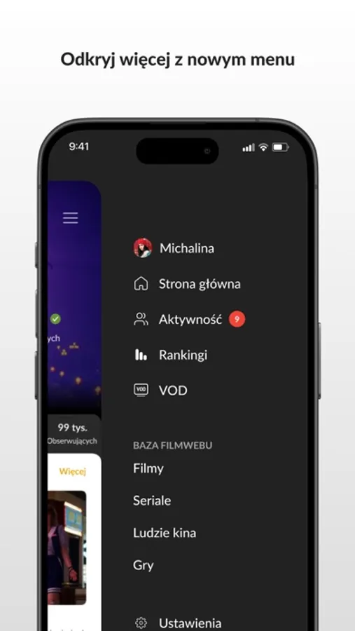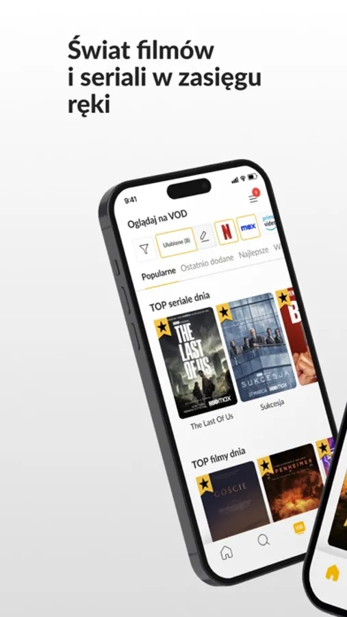 Poznawaj obszerną kolekcję filmów i seriali dostępnych w serwisach VOD. Od najnowszych blockbusterów przez niezależne produkcje aż po klasyczne dzieła kinematografii – wszystko w jednym miejscu. W aplikacji Filmwebu przejrzysz biblioteki takich serwisów streamingowych, jak: Netflix, Disney+, HBO Max, Amazon Prime Video, SkyShowtime, Canal+, Viaplay, TVP VOD, Player oraz wiele innych.