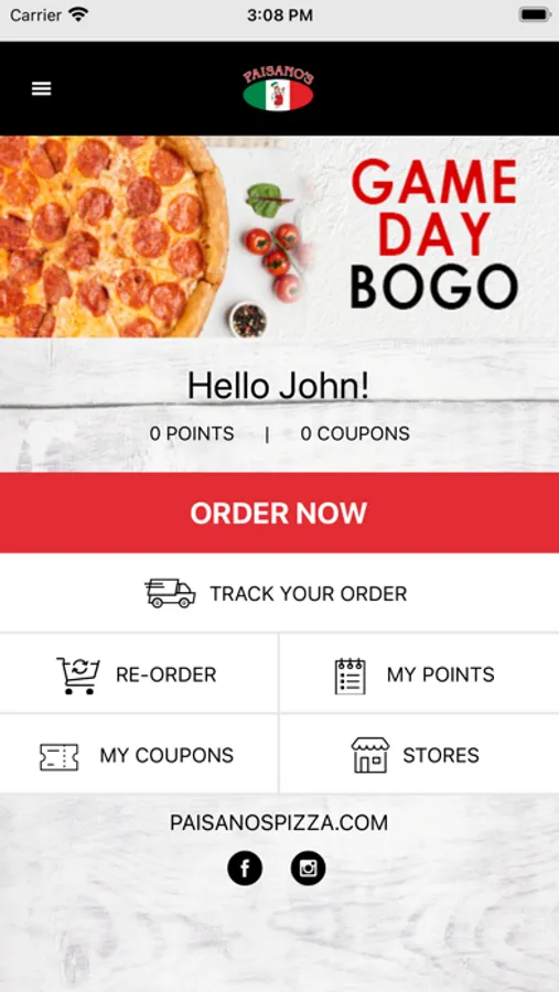 The official mobile app for Paisano's Pizza is now here. Ordering from Paisano's Pizza is as easy as eating a Pizza! With this app you can track your loyalty points, view your coupons, pay with your gift card and order your favorite food online.