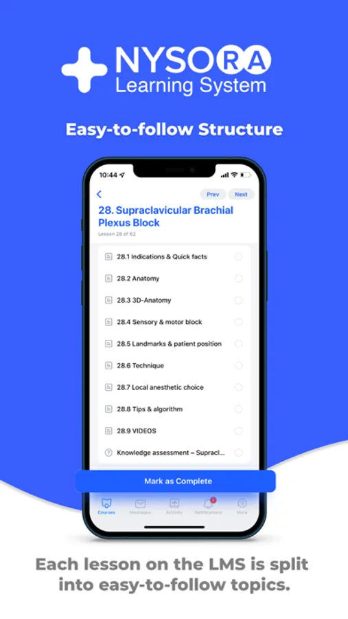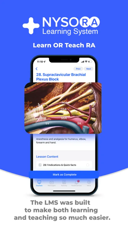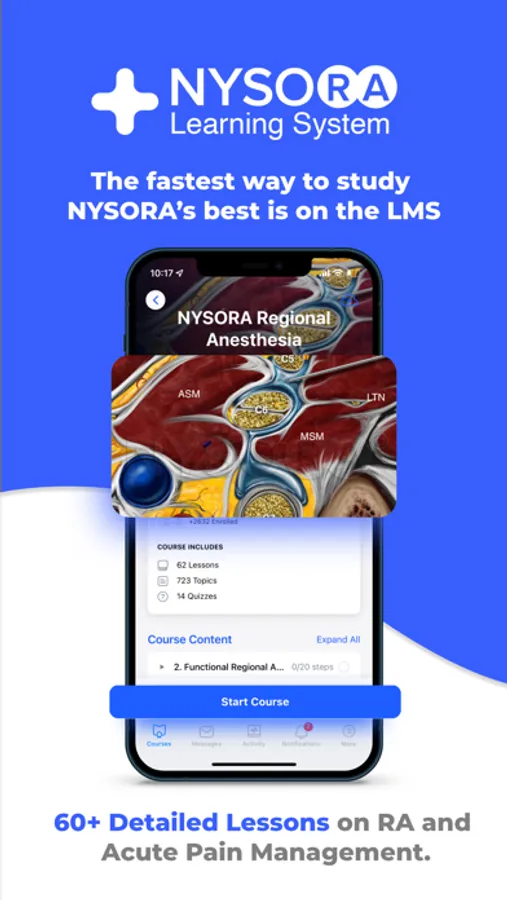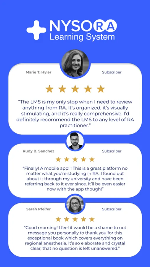 The NYSORA LMS is the most practical, comprehensive, and illustrated way to learn or teach all things regional anesthesia and beyond. Access the most practical information on regional anesthesia, organized to aid your studying. Join 5k+ of your colleagues on the NYSORA LMS platform, and instantly unlock all of these benefits: