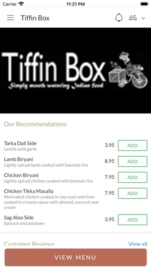 You can now order online, all your favourite dishes and many more delicious options, and have them delivered straight to your door in no time at all.Here at The Tiffin Box, we are constantly striving to improve our service and quality in order to give our customers the very best experience. As a result, we are finally proud to unveil and introduce our latest improvement, our new online ordering app! You can now relax at home and order your favourite, freshly prepared meals from The Tiffin Box online.