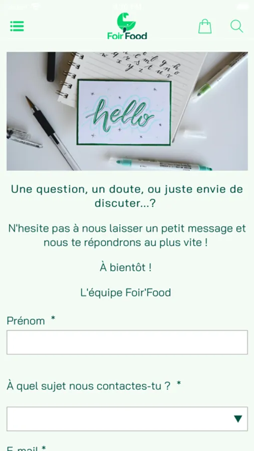 N’hésite pas à nous laisser ton avis ou écris-nous directement à contact@foirfood.com ou bien via notre appli ou site internet www.foirfood.com, dans la rubrique « Nous contacter ».
