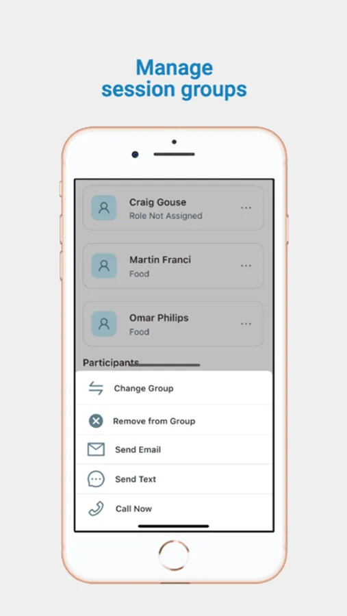 • Communicate with session participants as a group or individually via text and email