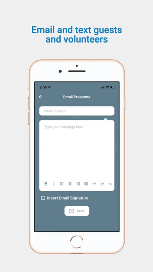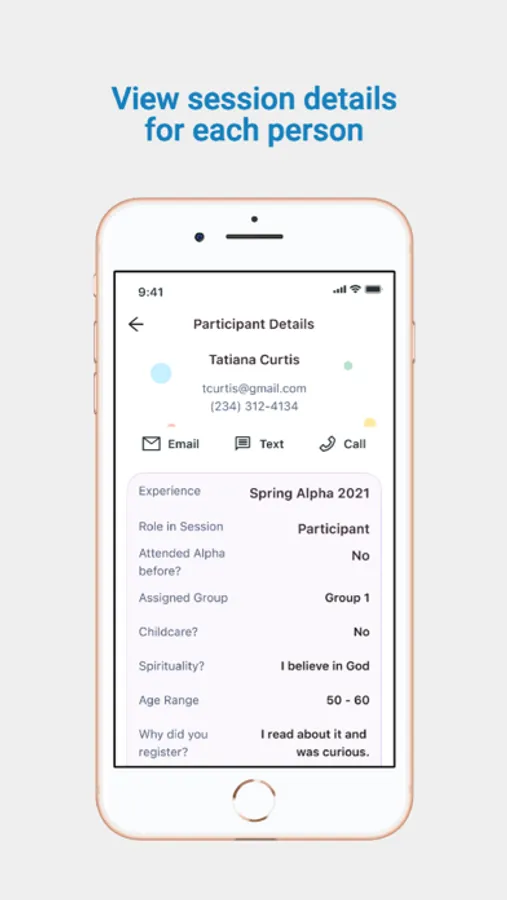 • Communicate with session volunteers as a group or individually via text and email