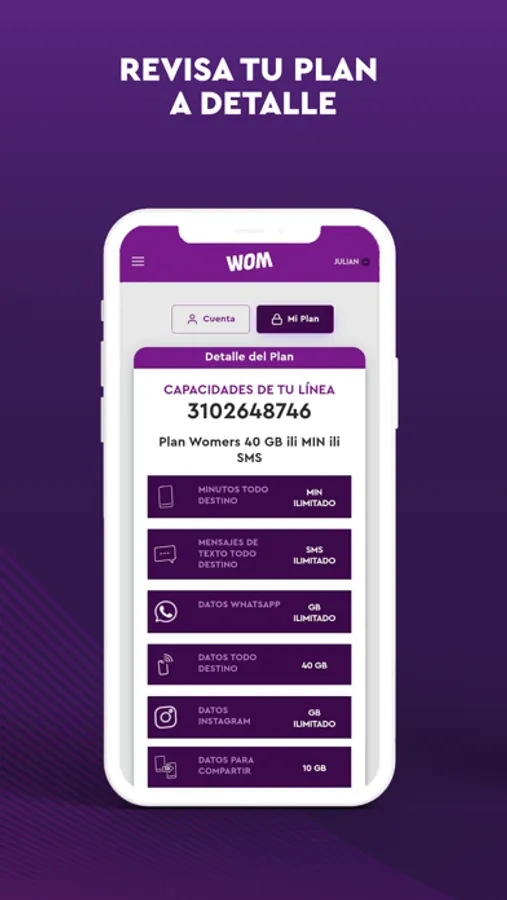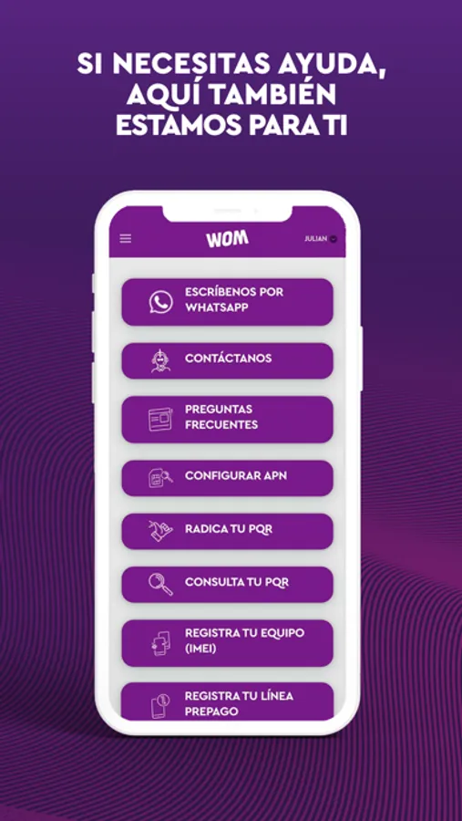 Queremos darte el servicio que mereces, por eso con Tu App WOM podrás: consultar tu saldo, comprar paquetes y hacer recargas de tu línea prepago, conocer tu tienda más cercana y mucho más.