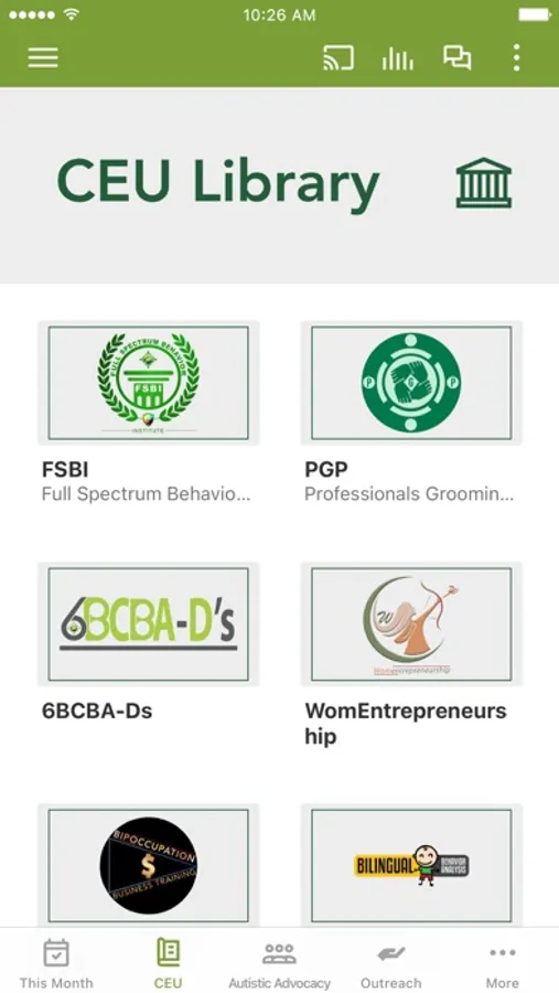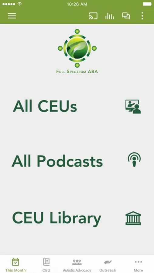 Free CEUs for ABA providers! The Full Spectrum ABA app offers free Continuing Education Units and simple means to verify each CEU. You will also find our Full Spectrum Behavior Institute Journal Clubs, our BIPOCcupation minority leadership program (led by Dr. Terrence Bryant, BCBA-D), our WomEntrepreneurship program (led by Dr. Jennifer Bellotti, BCBA-D), some of our new podcasts, our PGP trainings, our Bible Based ABA church inclusion program, and updates related to Autistic Advocacy, and information on all our branches.