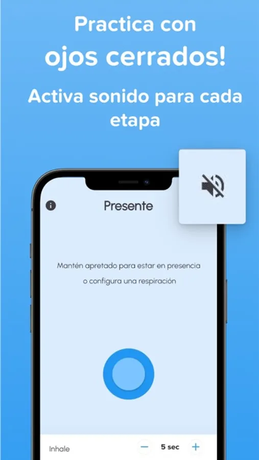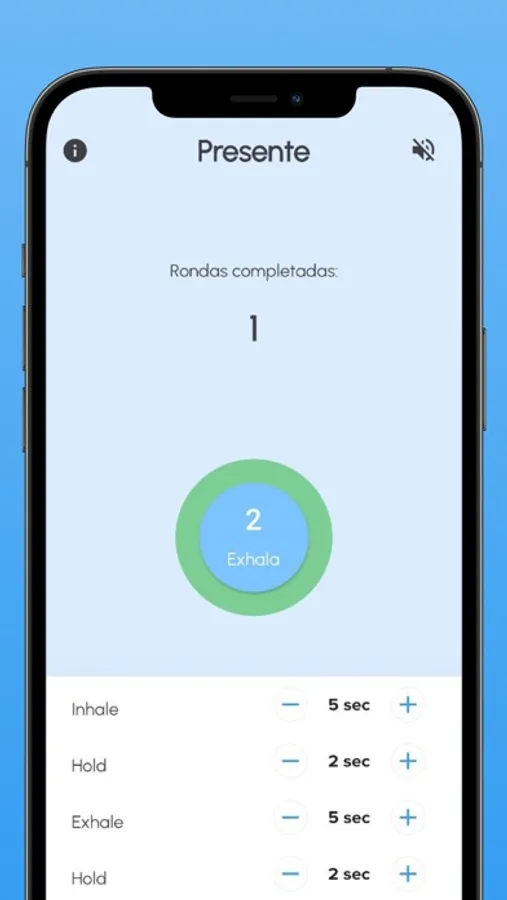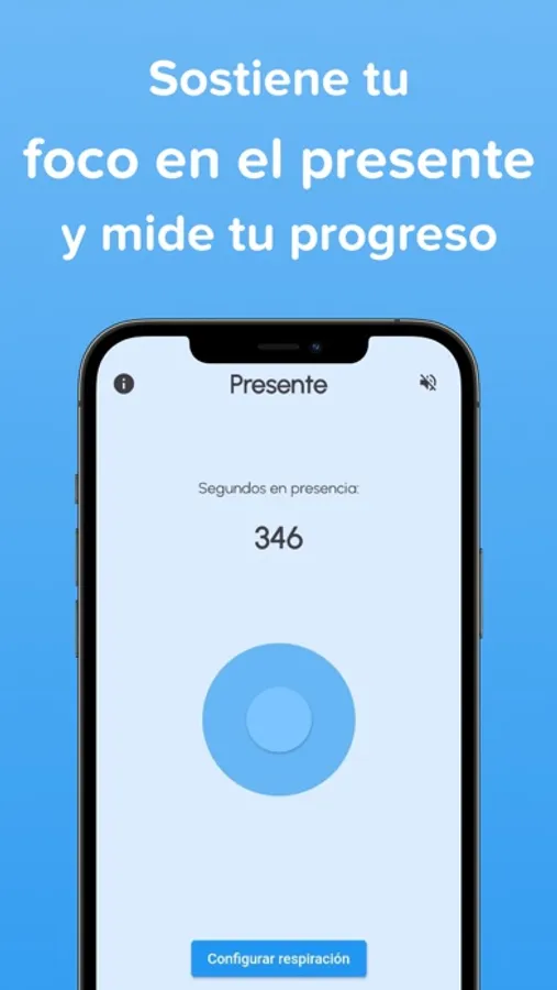 - Presente es una app muy simple (¡sólo una pantalla!) para practicar respiraciones y devolverte al presente.
