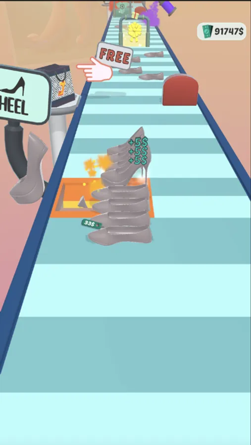 1-) Upgrade the shoes you collect by going through the heel machines.