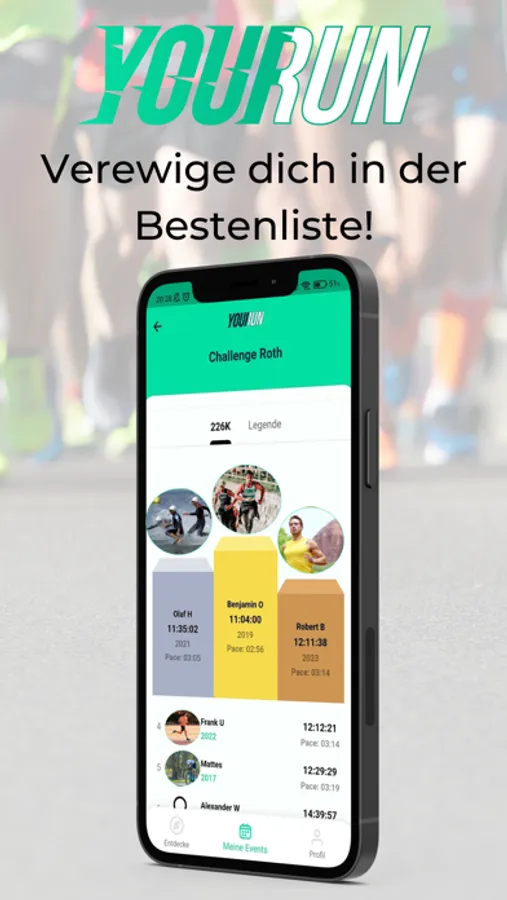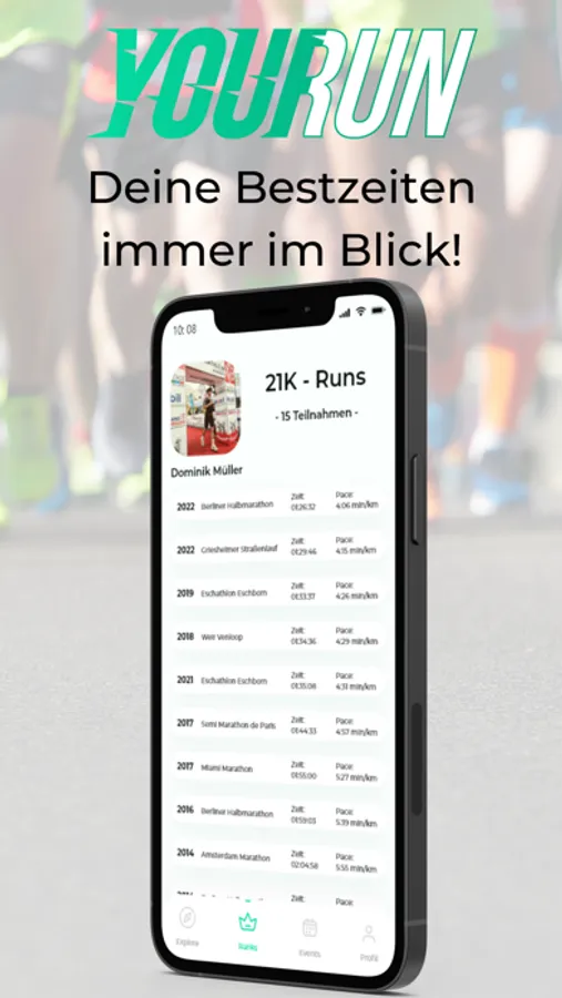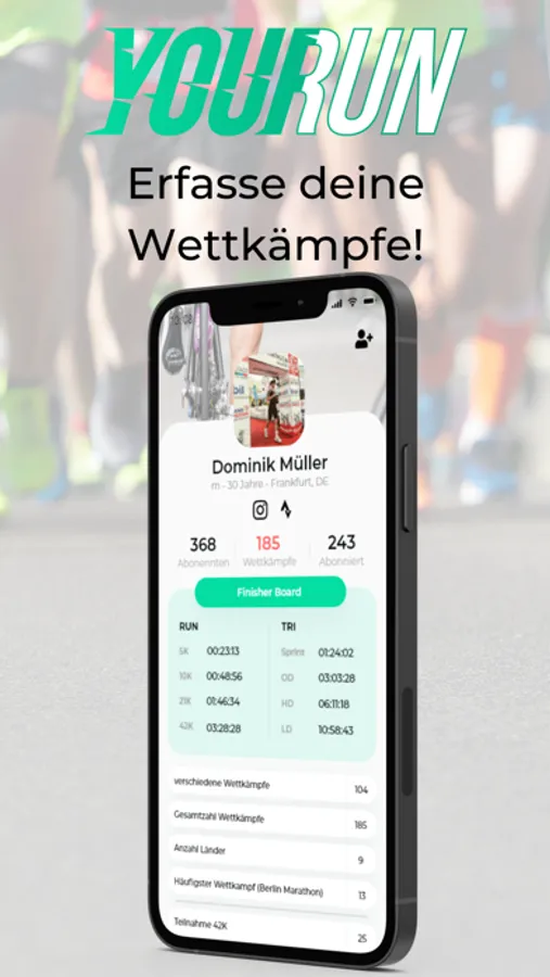 Get the must have app for all endurance athletes now. Your-Run is your competition companion for running and triathlon. The athlete's profile. Your-Run offers you the following functions: