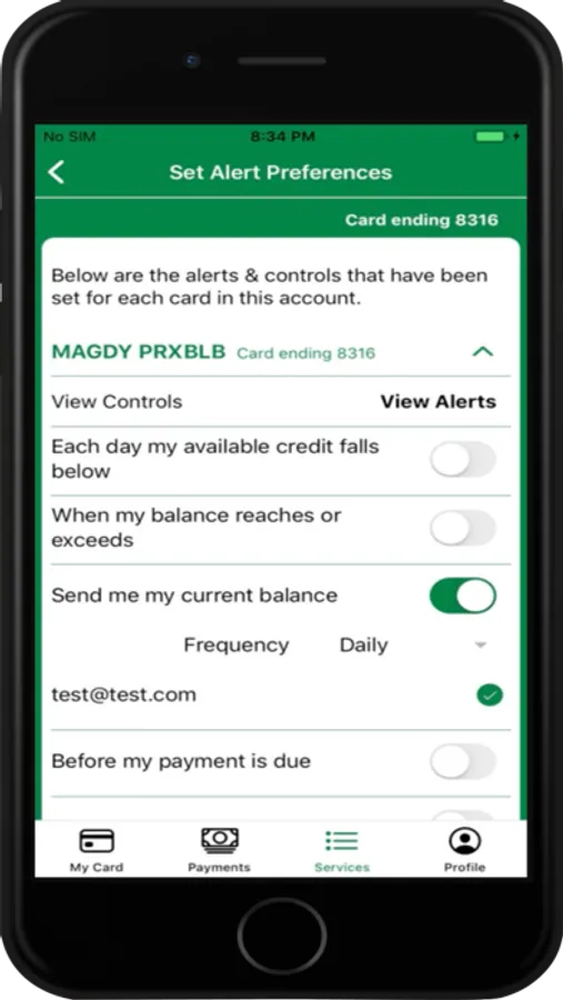 -Freeze or unfreeze your credit card to control the purchases that go on your card.