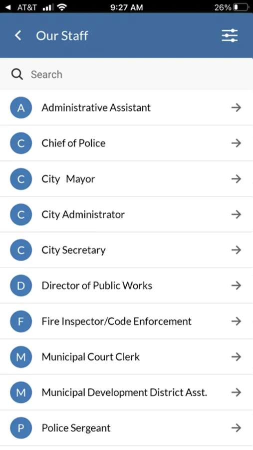 - Staff listings