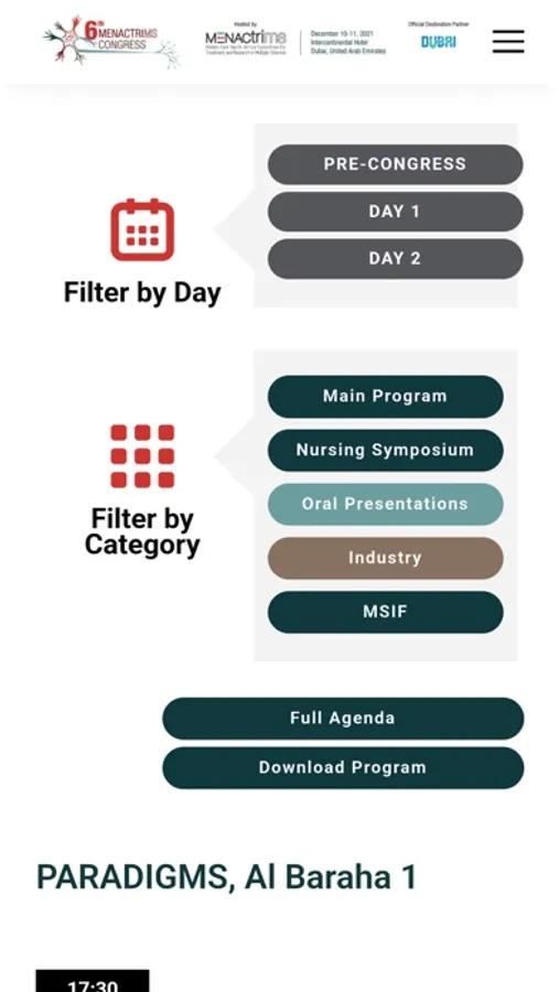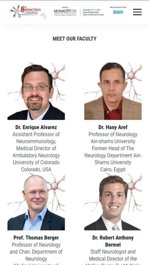 The official application of the Sixth Middle East North Africa Committee for Research and Treatment in Multiple Sclerosis (MENACTRIMS) Congress which will take place from Friday, December 10 to Saturday, December 11, 2021 both physically and virtually at the Intercontinental Hotel, Dubai, United Arab Emirates. The congress is taking place in a hybrid format, offering many exciting possibilities to grow your network, transfer knowledge and explore the latest industry developments.