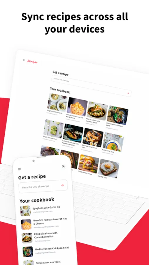 Whether on mobile or the web, your recipes follow you everywhere. Create a free account to access your recipes through JustTheRecipe.com or the app.