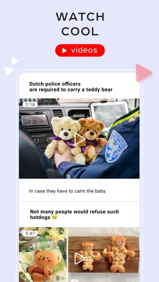 I mean - a daily selection of interesting, positive and informative content. Read interesting articles about everything, watch videos, save what you like in "Favorites" and create your own collection. Share meaningful quotes, tips, interesting facts with friends.