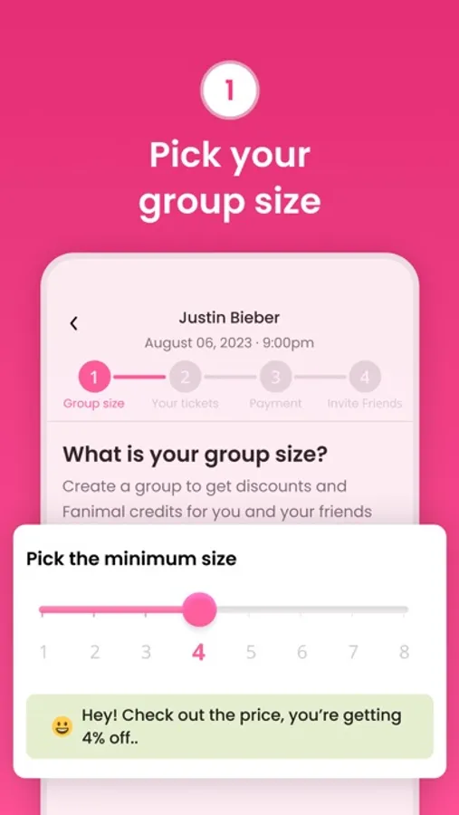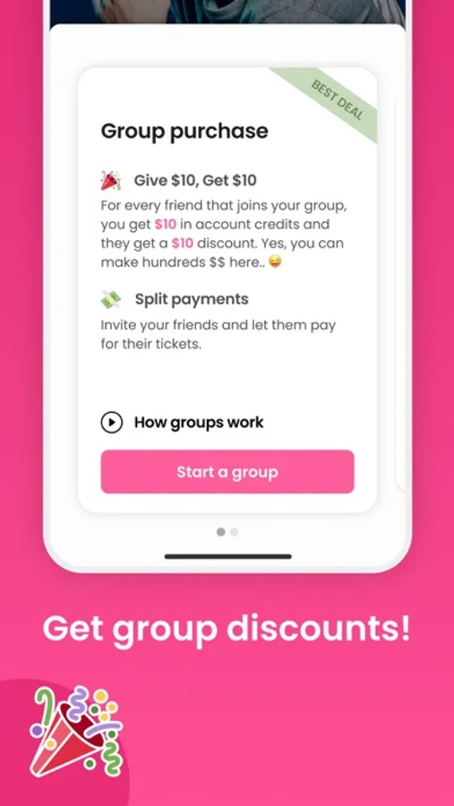 As a small team of live event lovers, we strive to bring our customers the best experience from start to finish, because memories like these can’t be repeated. This is why we’ve developed a proprietary group purchase feature, which allows users to pick an event, create a group, and invite their friends. Why is this feature so cool? You can reserve up to 8 tickets without the hassle of paying for everyone. Even better - the bigger your group, the bigger your savings!